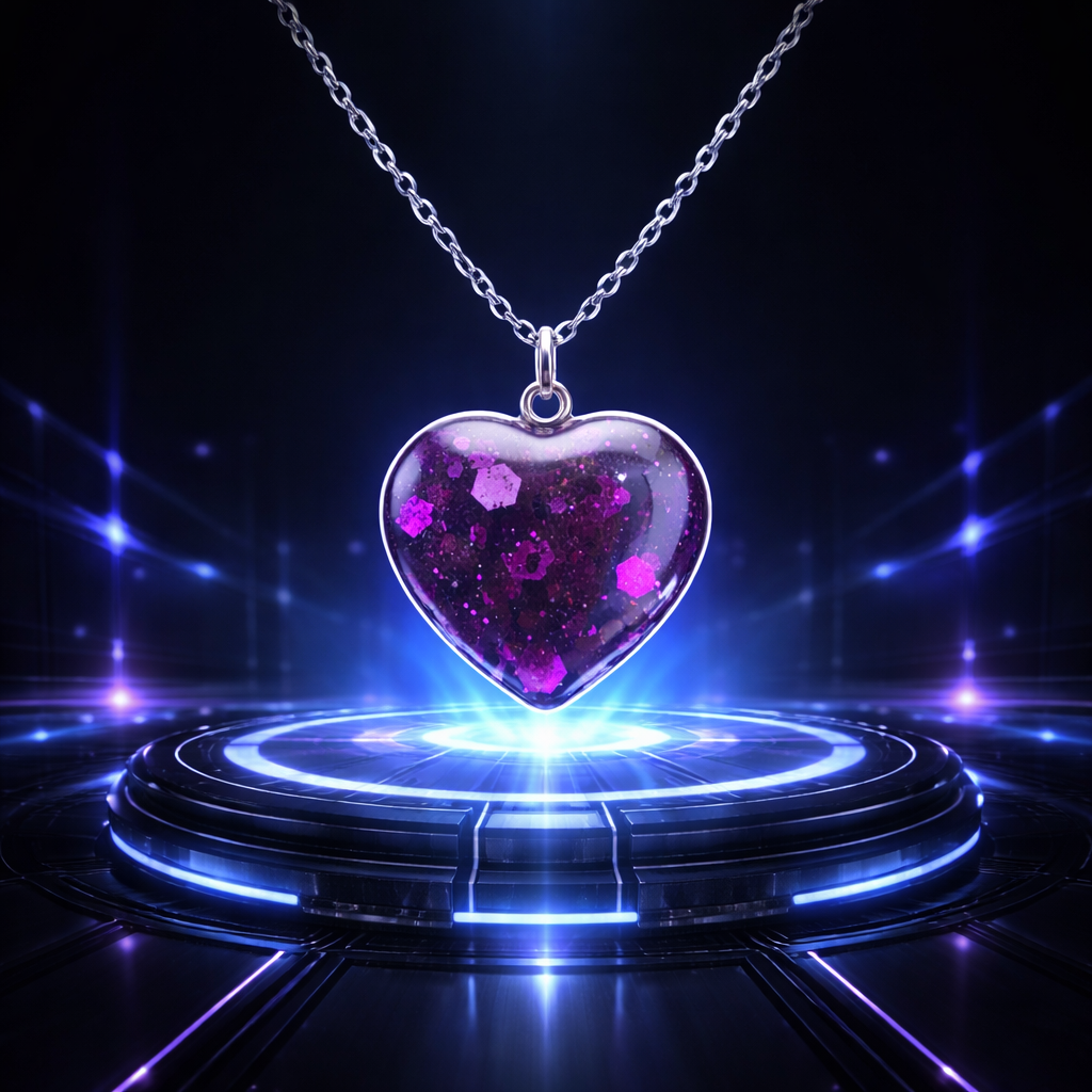 Silver chain with heart‑shaped resin pendant