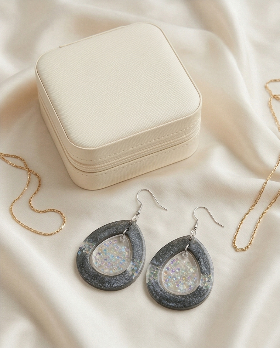 Lightweight, eye‑catching, and crafted with care, these earrings are ideal for anyone searching for handmade statement earrings, glitter teardrop jewellery, or iridescent resin accessories. Their elegant silhouette and colourful shimmer make them a standout gift for birthdays, anniversaries, or anyone who loves unique artisan pieces.