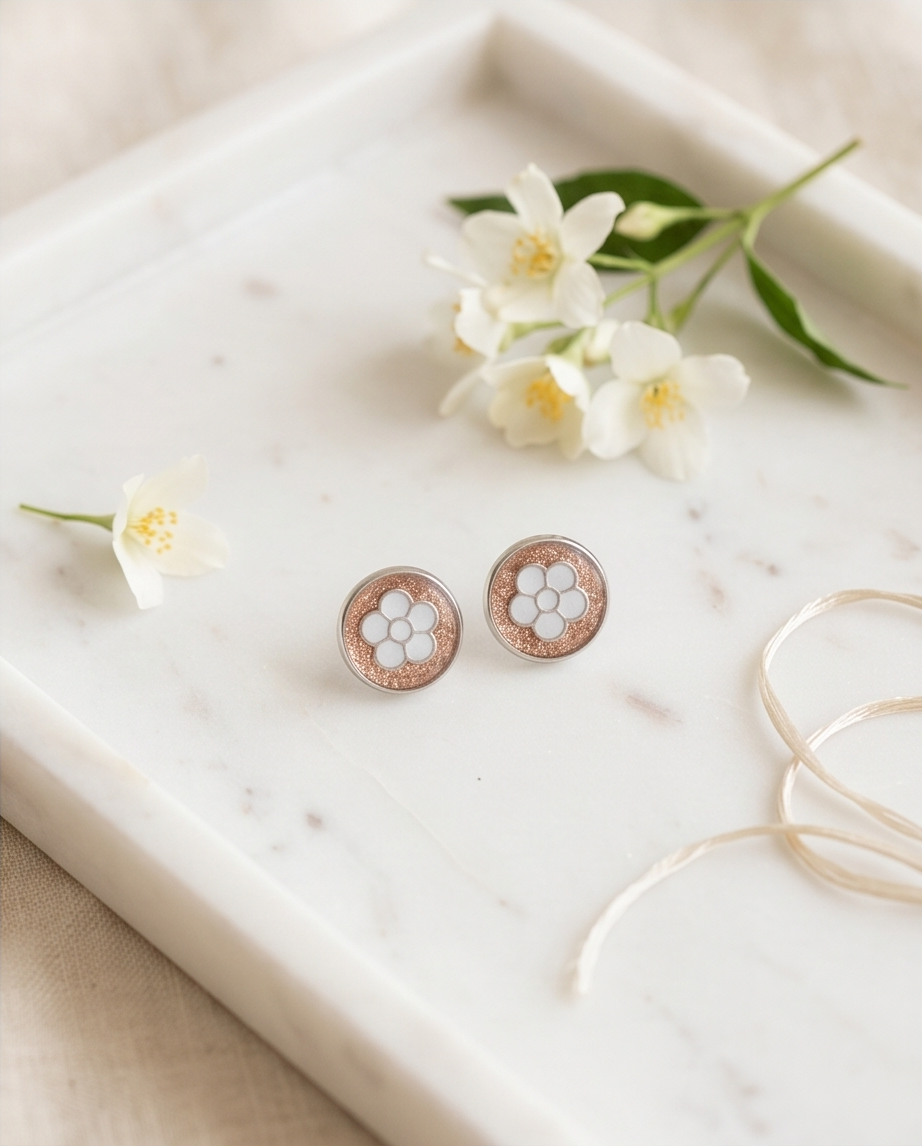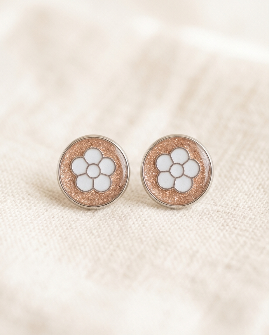Lightweight and comfortable for everyday wear, these earrings are perfect for spring outfits, casual styling, or gifting to someone who loves colourful, feminine jewellery. Their sweet floral motif and glittery shine make them a lovely gift for her, especially for fans of handmade resin accessories.