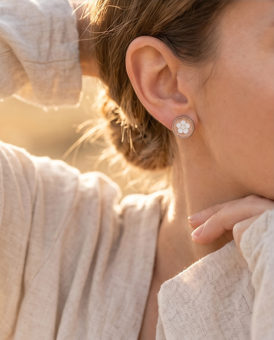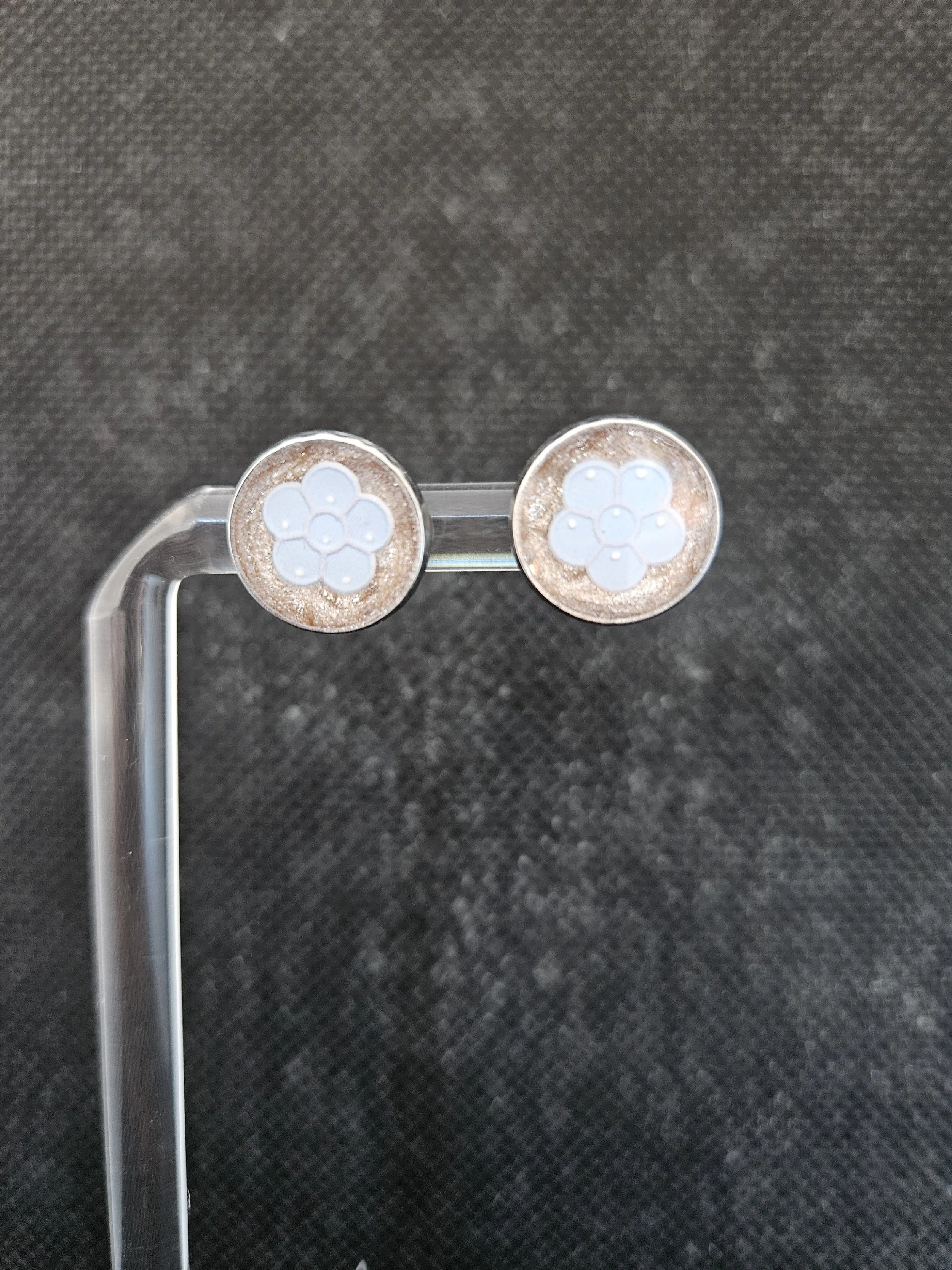 Bright, delicate, and full of sparkle, these pale blue flower glitter stud earrings add a soft, charming touch to any outfit. Each stud features a shimmering glitter base topped with a sweet light‑blue floral design, creating a pretty, eye‑catching finish that reflects the light beautifully.