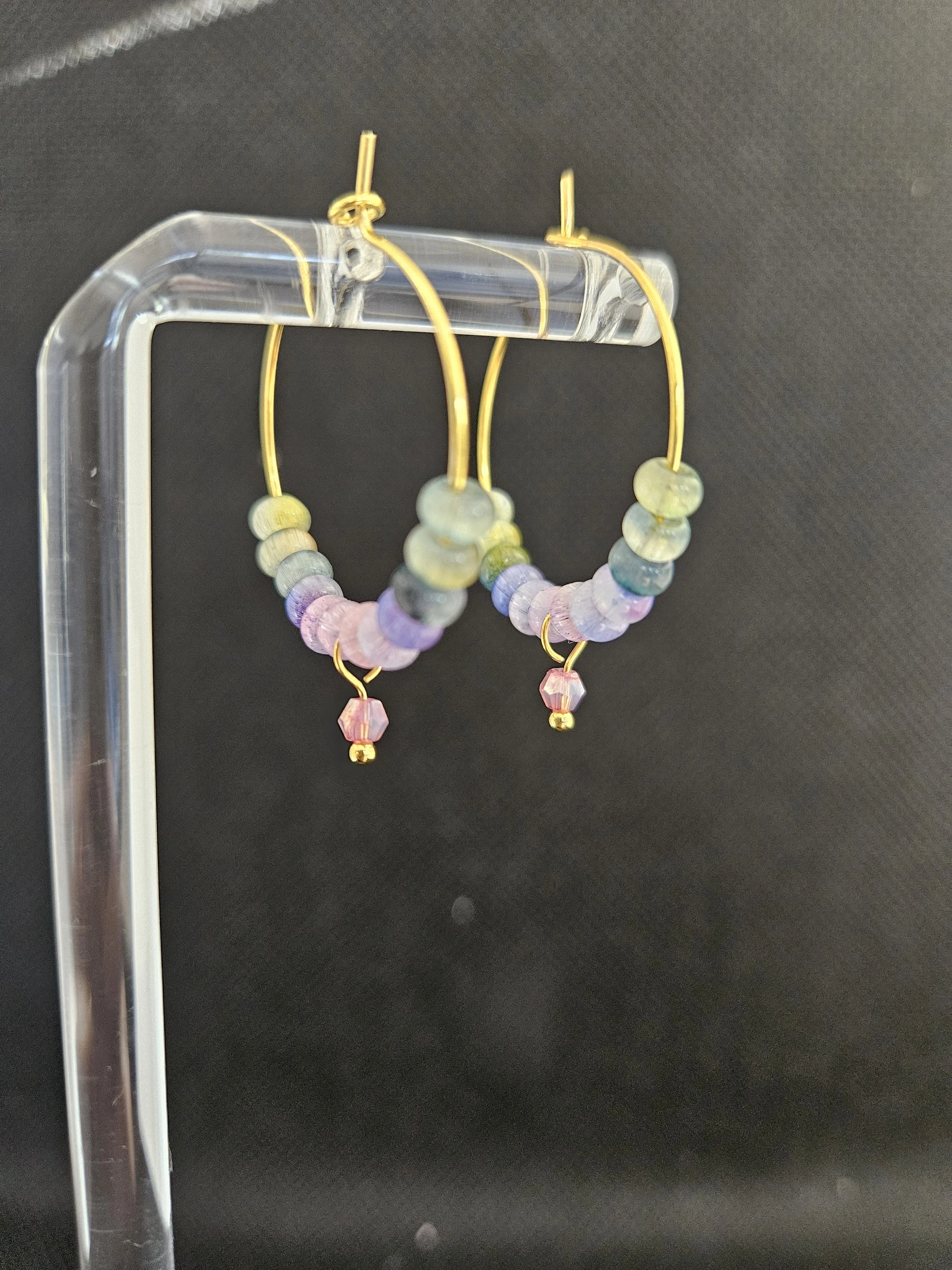 - Handmade pastel bead gold hoop earrings
