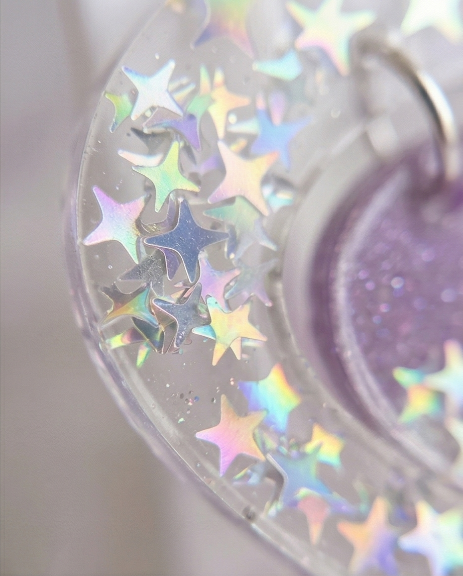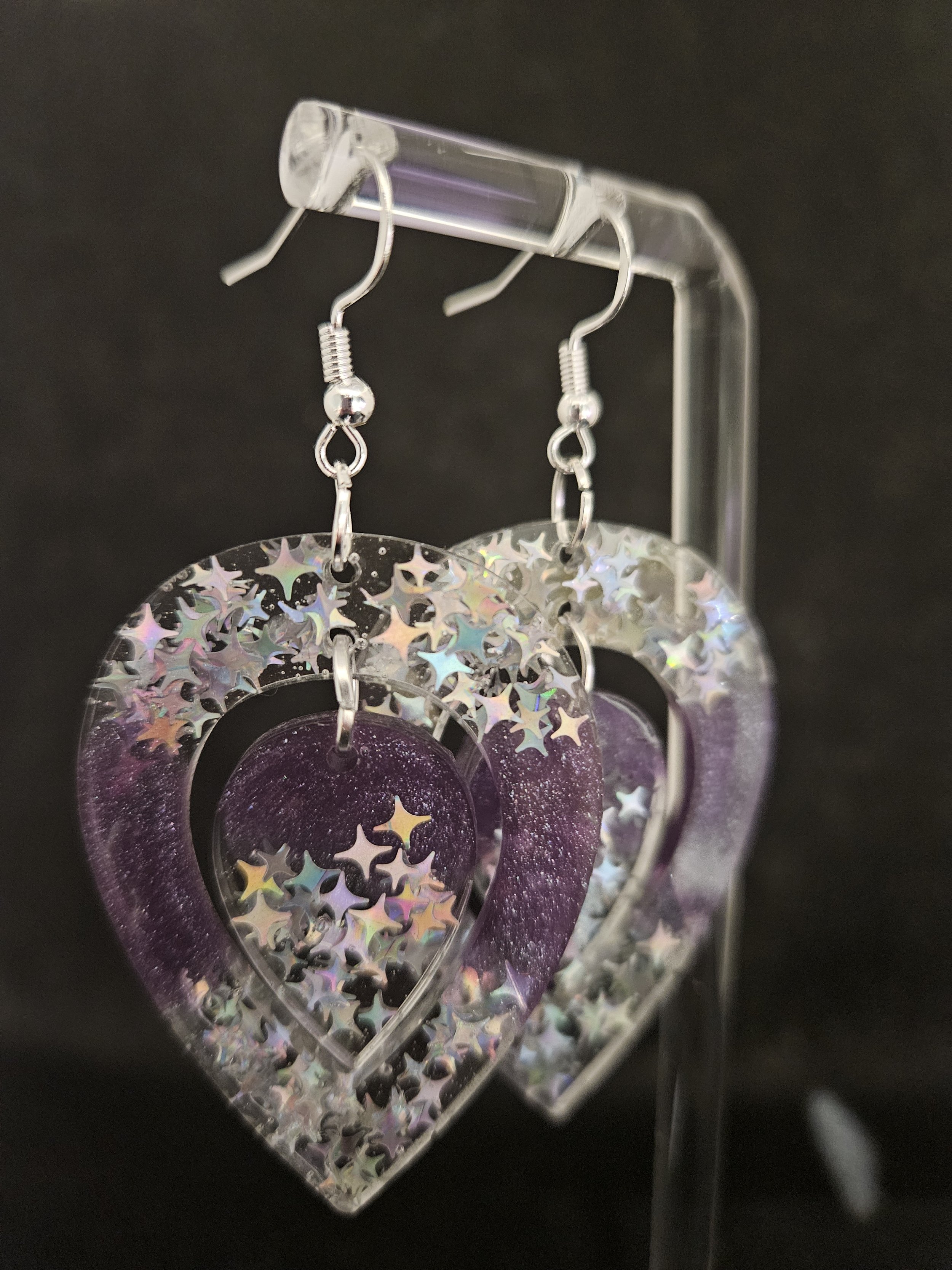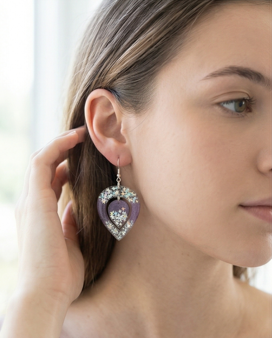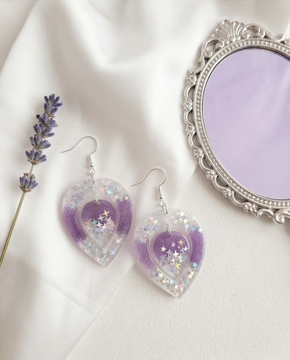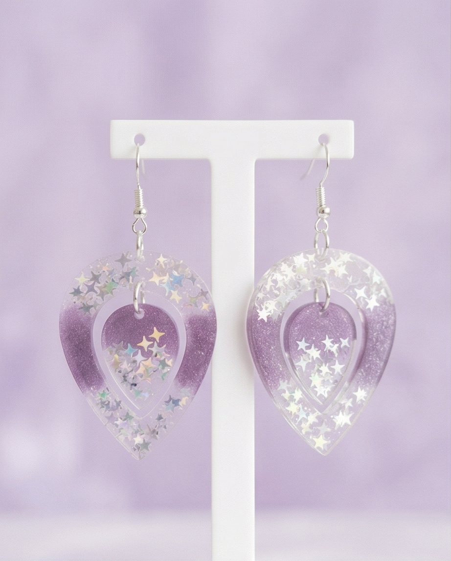 Great for customers looking for unique resin earrings, purple star accessories, or handmade celestial gifts.