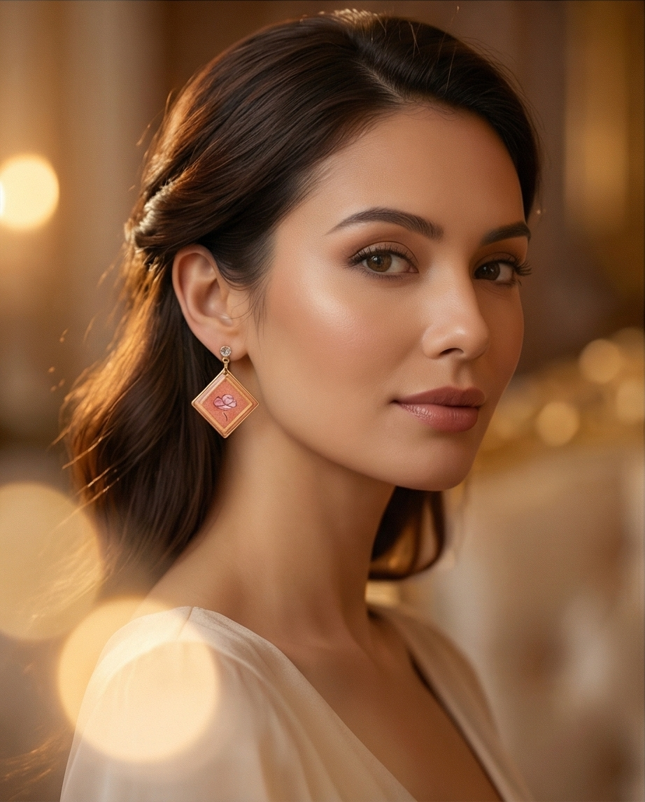 These earrings blend modern geometric design with traditional craftsmanship, making them perfect for weddings, special occasions, or adding a romantic flourish to everyday outfits. Their unique artistry and vibrant colours make them a standout gift for anyone who appreciates handcrafted jewellery.