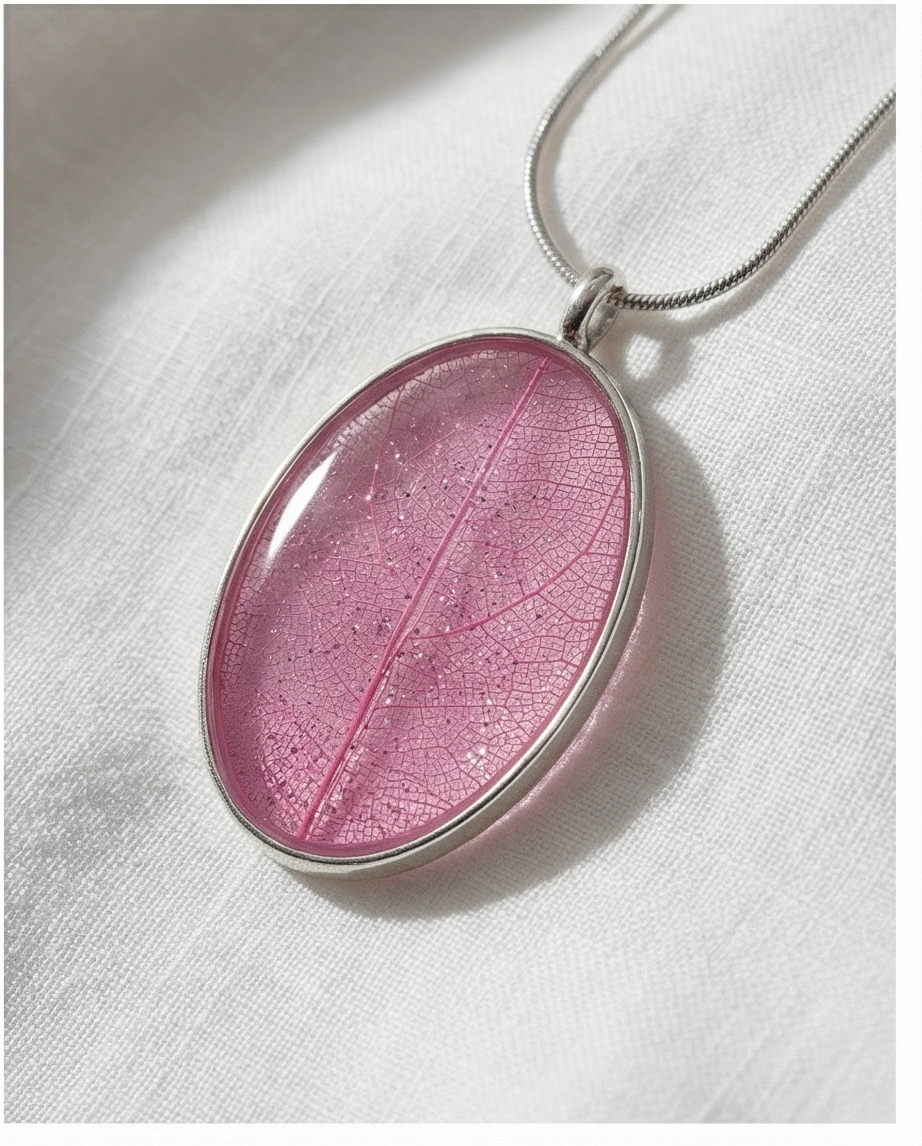 Celebrate the beauty of nature with this Pink Leaf Pendant Necklace, a delicate and feminine piece handcrafted to showcase the intricate details of a real leaf. Preserved in a smooth, glossy finish, the leaf’s natural vein pattern becomes a stunning work of art, glowing softly in shades of pink that shift beautifully in the light.