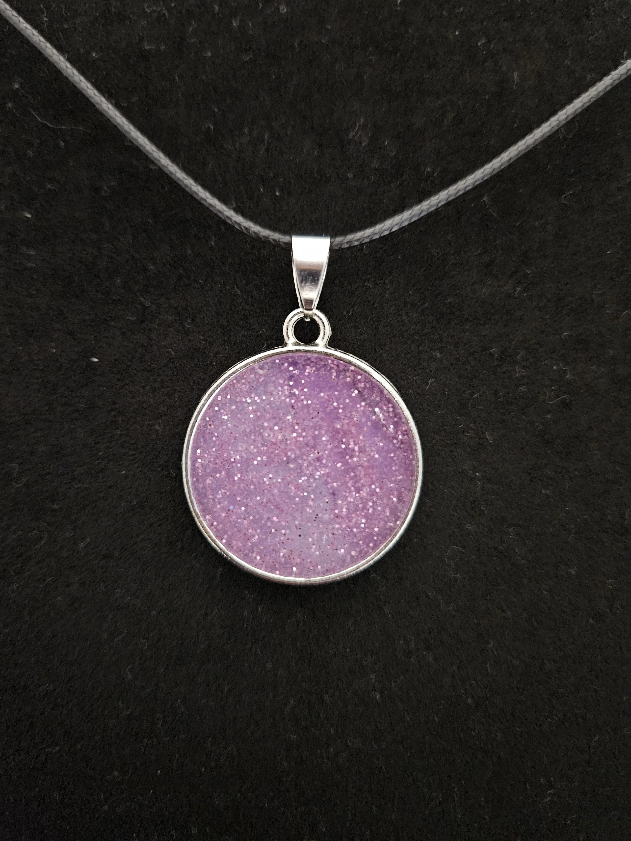 Step into a world of shimmer with this handmade Purple Druzy Sparkle Pendant Necklace, a piece designed to catch the light—and every eye in the room. Crafted with a smooth, glitter‑infused resin centre that shifts between lavender, lilac, and deep violet, this pendant creates a druzy‑inspired crystal effect without the weight of natural stone.