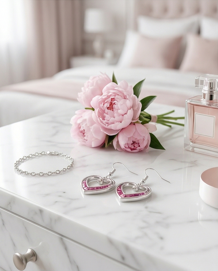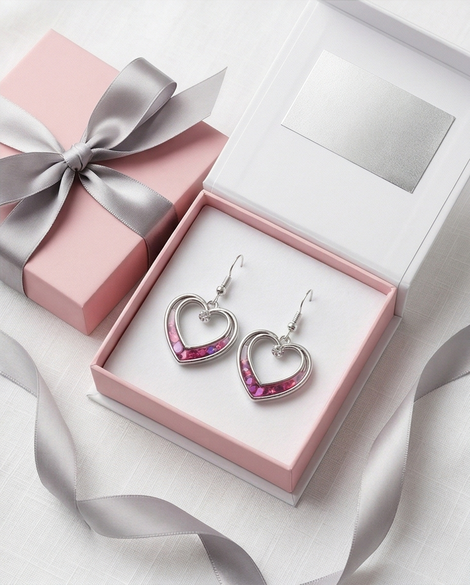 A beautiful choice for anyone who loves handmade jewellery, heart earrings, or unique pink and purple accessories.